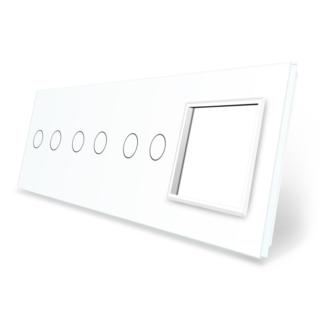 Рамка 4-постова для трьох 2-сенсорних вимикачів і розетки (2-2-2-0) LIVOLO, загартоване скло, біла, 294×80 мм